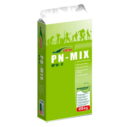 de PN-mix is door de samenstelling ideaal voor de herstelgroei van grassportvelden en golfterreinen. Vooral na de winter of bij doorzaai is de PN-mix zeer gunstig te gebruiken. Het gebruik van de PN-mix garandeert een snellere dichtgroei van kale en/of beschadigde plekken. Ook is de mix uitermate geschikt bij de aanleg van gras(sport)velden. De PN-mix van DCM zorgt namelijk voor een dichte grasmat en een betere beworteling wanneer het bij de aanleg van een grasveld wordt gebruikt. De organische voedingselementen en ureumformaldehyde worden geleidelijk vrijgesteld door het bodemleven. Daarnaast bevorderd deze mix de vorming van humus voor een betere inworteling en minder uitspoeling.