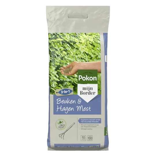 Pokon Beuken & Hagen Voeding, verrijkt met in de natuur voorkomende mineralen (zeoliet en algen), voedt de plant en verbetert de grond. Deze organische minerale voeding zorgt ervoor dat je hagen goed groeien en meer weerstand krijgen. Door de extra toevoeging van Magnesium (MgO) en IJzer (Fe) worden je hagen mooier en extra groen.